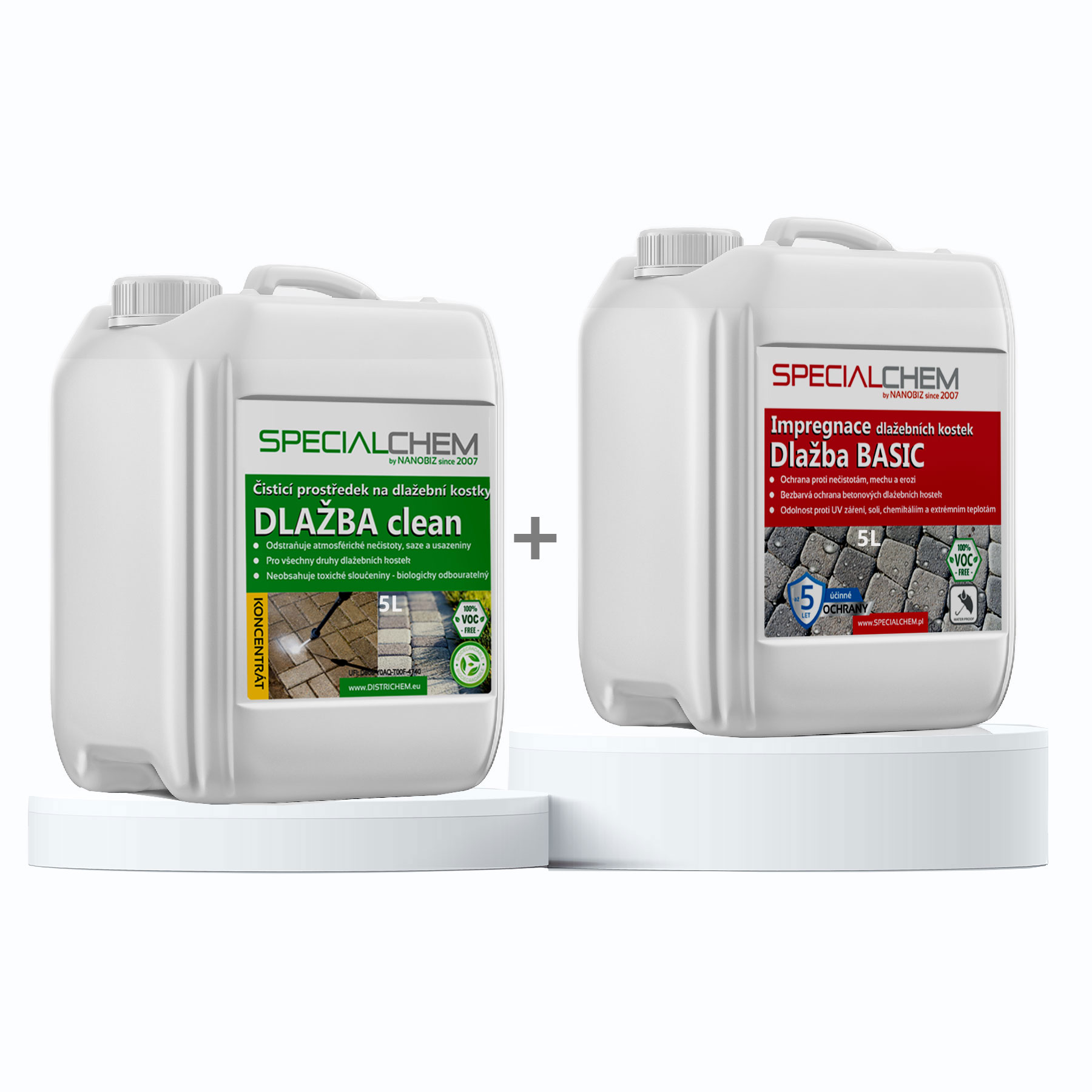 Čištění a impregnace Dlažební sady SPECIALCHEM – postarejte se o krásu své dlažby s čisticí a impregnační sadou! Sada obsahuje SPECIALCHEM BRUK CLEAN, který účinně odstraňuje špínu, skvrny a nečistoty, díky čemuž budou vaše terasy, příjezdové cesty a chodníky vždy jiskřit čistotou. Tato sada doplněná o SPECIALCHEM BRUK BASIC, inovativní impregnaci, která chrání před mechem a skvrnami, poskytuje dlouhotrvající ochranu a usnadňuje údržbu, což vám umožní naplno si užít každý okamžik venku!