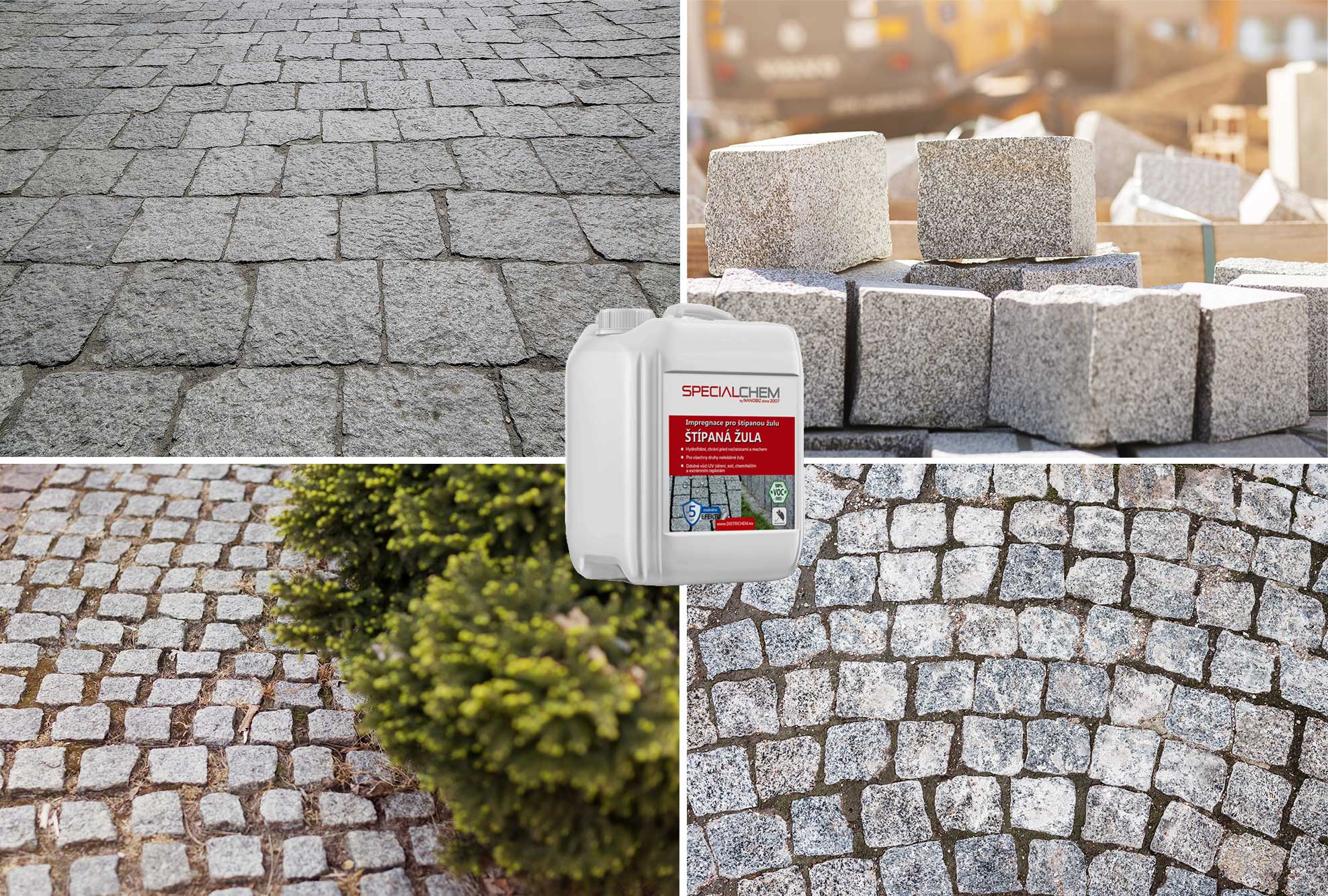Přípravek na ochranu všech druhů žuly, jako jsou: žulové chodníky, ploty, stěny, podlahy, fasády, objekty jako jsou pomníky atd.