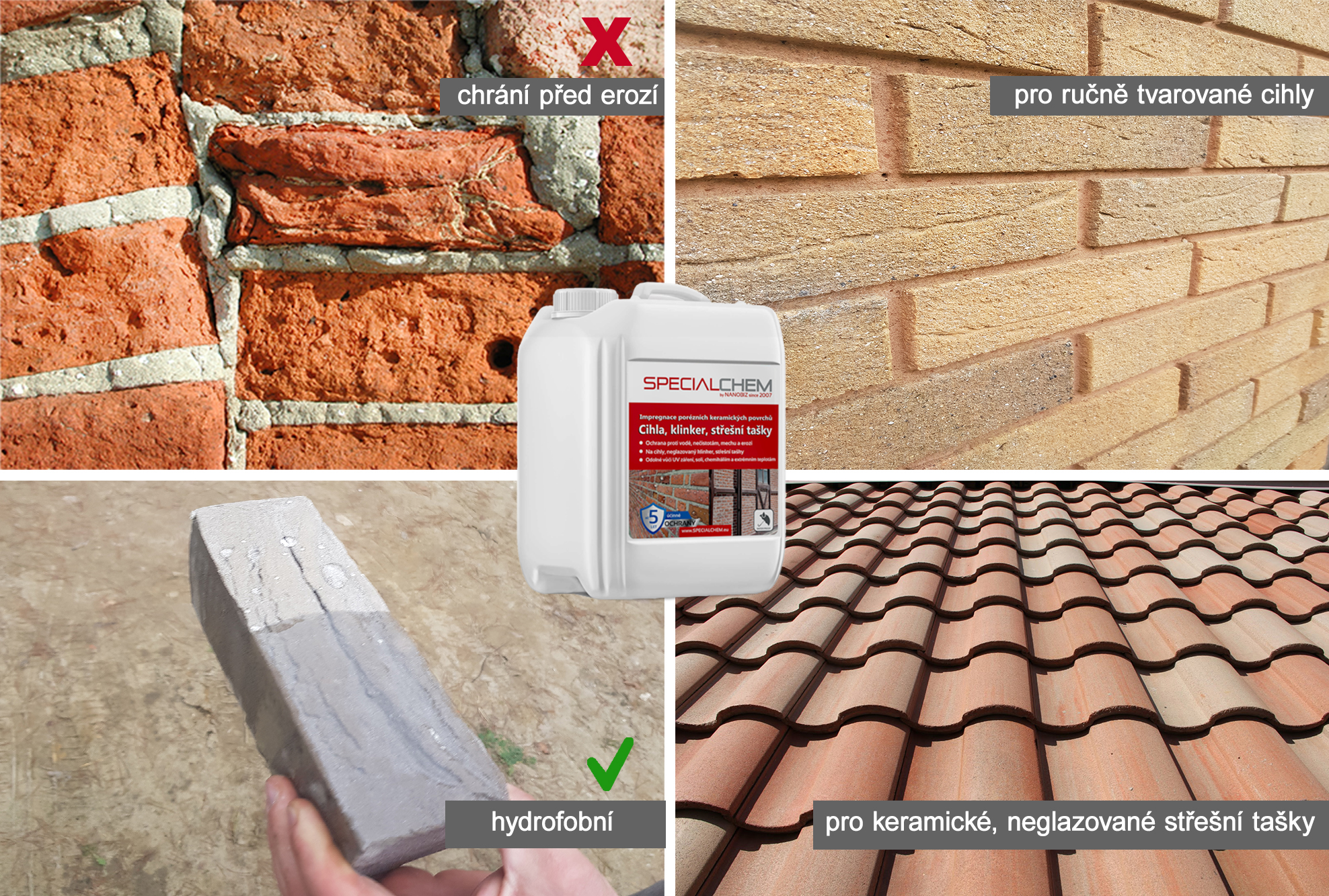 Nanotechnologická bezbarvá impregnace vytvořená na vodní bázi a určená pro neglazované cihly, neglazovaný klinker, neglazované keramické střešní tašky, ručně tvarované cihly, květináče a keramické výrobky a další prvky ze savé (neglazované) keramiky. Impregnuje také spárovací hmotu.